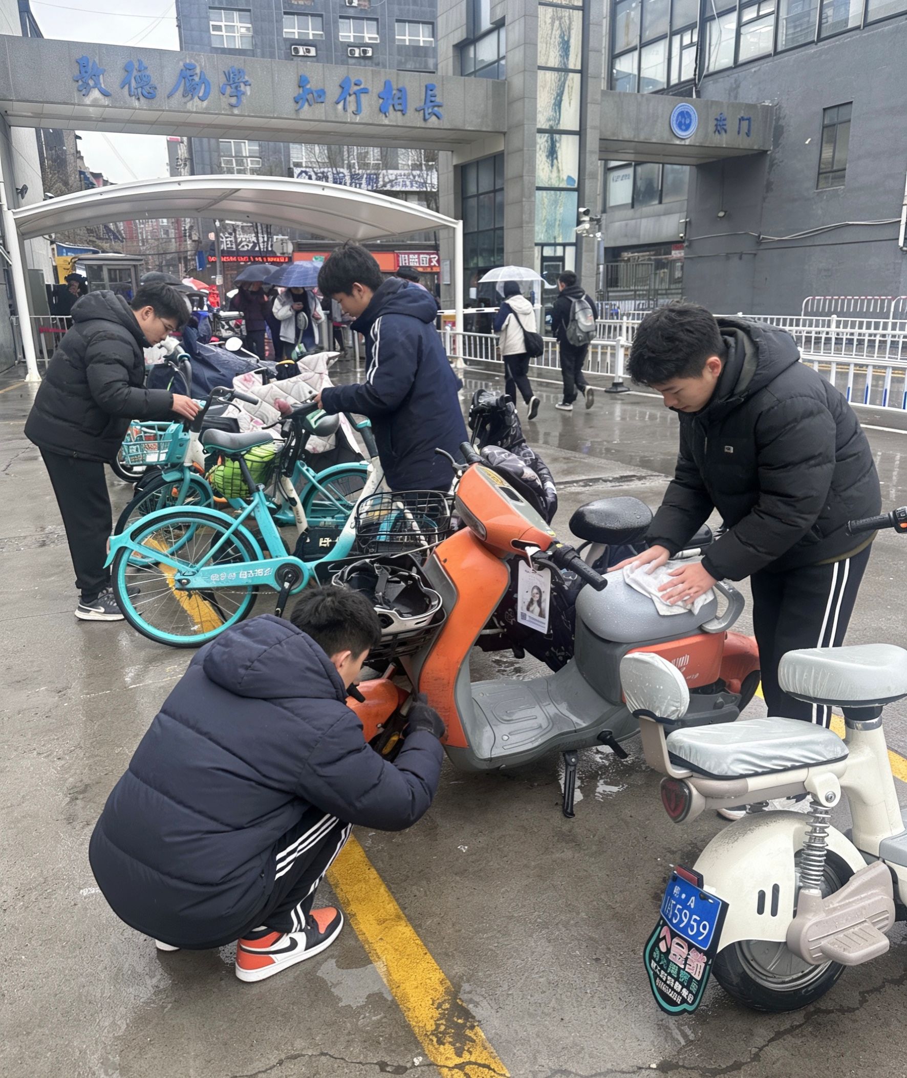 活动现场,学生们分工协作、热情投入,重点针对教学楼、宿舍楼周边共享单车及电动车乱停乱放、占道拥堵等突出问题开展集中整治。作为学院深化资助育人、引导受助学生从“受助”向“反哺”转变的实践载体,志愿者们以实际行动践行志愿初心,逐一扶起乱停放在人行道、绿化带、消防通道及宿舍门口的车辆,严格对照校园停车标线规范摆放,确保车头朝向统一、车身贴合标线,彻底清理占道车辆带来的通行隐患;针对倾倒、破损车辆细心整理归置,同步清理车辆周边杂物垃圾,全面改善校园角落环境面貌,让校园通行更顺畅、环境更整洁。大家在协作整治中锤炼责任担当,强化感恩意识与团队协作能力,用点滴行动筑牢校园安全防线,优化整体环境秩序。