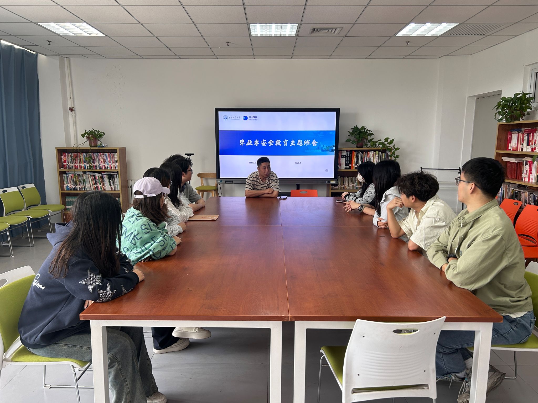2026年4月17日,加拿大pc28官网 召开“荣校有我”2026届毕业生安全教育主题班会。班会围绕爱校荣校、文明离校、应聘安全、职业发展展开,辅导员洪涛细致讲解毕业流程、离校安全与注意事项,着重叮嘱学生在就业过程中谨防上当。