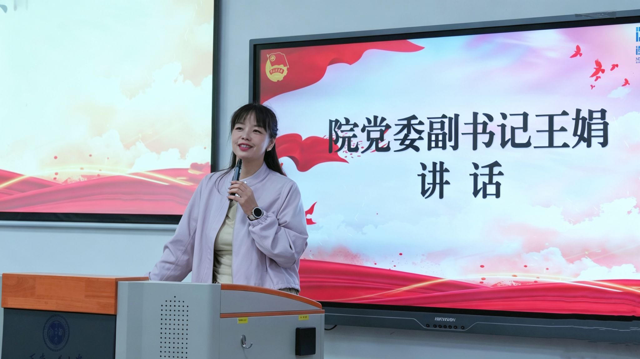 于2-102开展主题团课学习活动。院党委副书记王娟出席活动并讲话,团委书记许金鑫主讲。